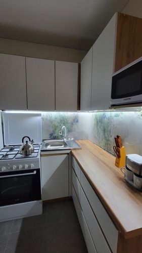 В квартире есть все необходимое для краткосрочного проживания (чистые постельные принадлежности и полотенца, столовые приборы, посуда, смарт ТВ, СВЧ, холодильник, стиральная машина, фен, утюг, Wi-Fi). Квартира без балкона.
