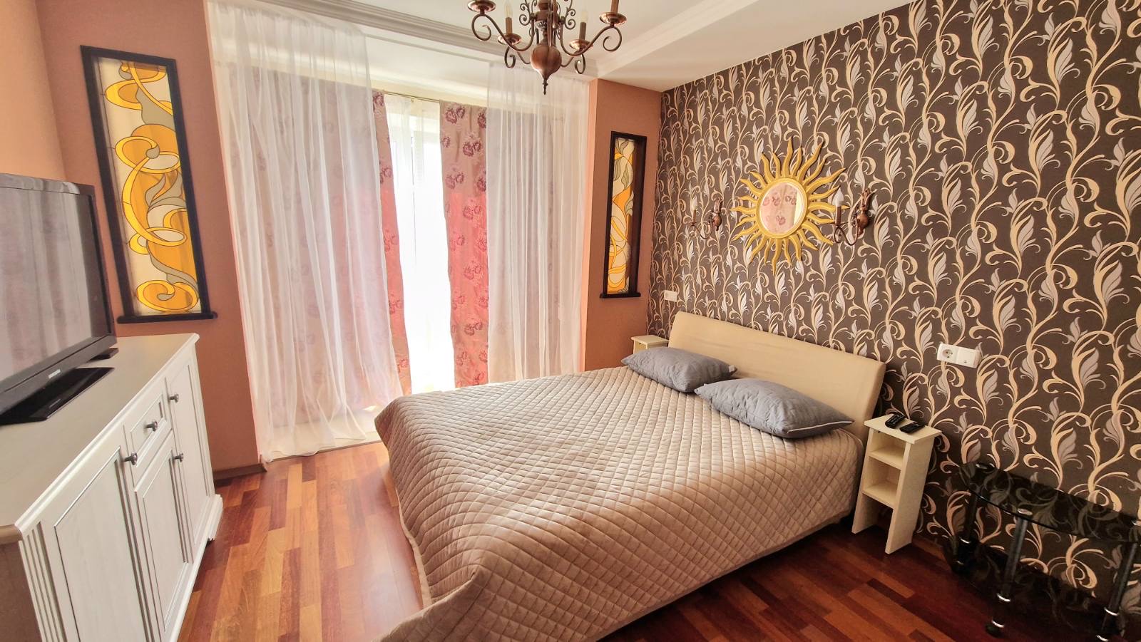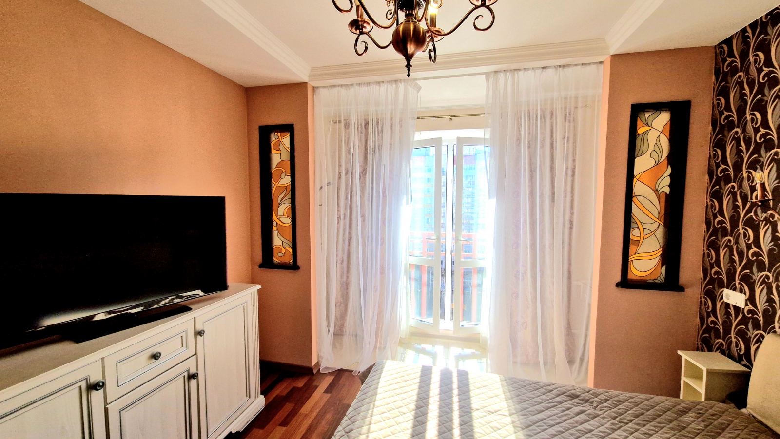 Однокомнатная квартира для ценителей комфортного проживания. Очень эстетичные апартаменты. Панорамные окна открывают прекрасный вид с седьмого этажа. Новая мебель и современная техника, дизайнерский ремонт не оставят равнодушным ни одного гостя. В 50 м пляж, водные развлечения, в шаговой доступности кафэ, рестораны,