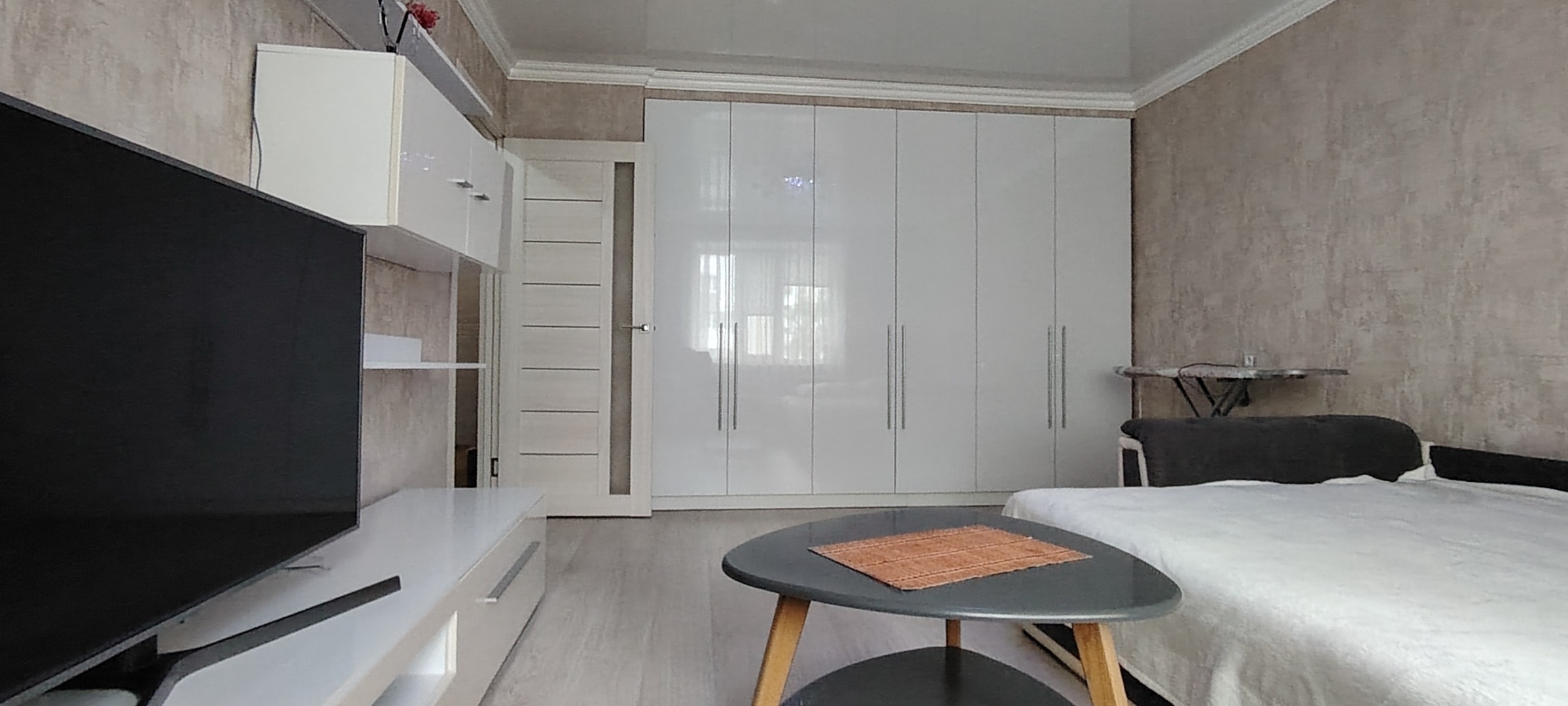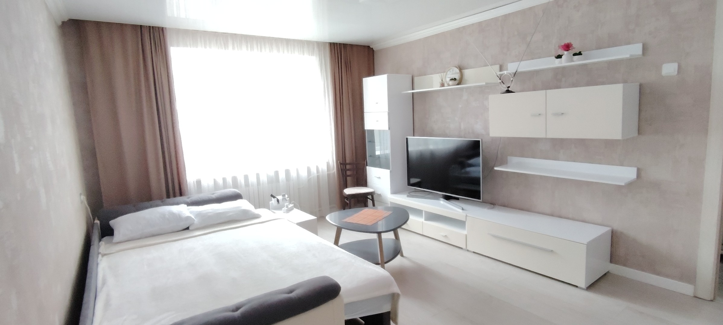Телевизор, Домофон, Полотенца, Постельное бельё, Мыло, Туалетная бумага, Стиральная машина, Утюг, Фен, Лифт, Застеклённый балкон/лоджия, Охраняемая парковка поблизости, Холодильник, Микроволновая печь, Посуда