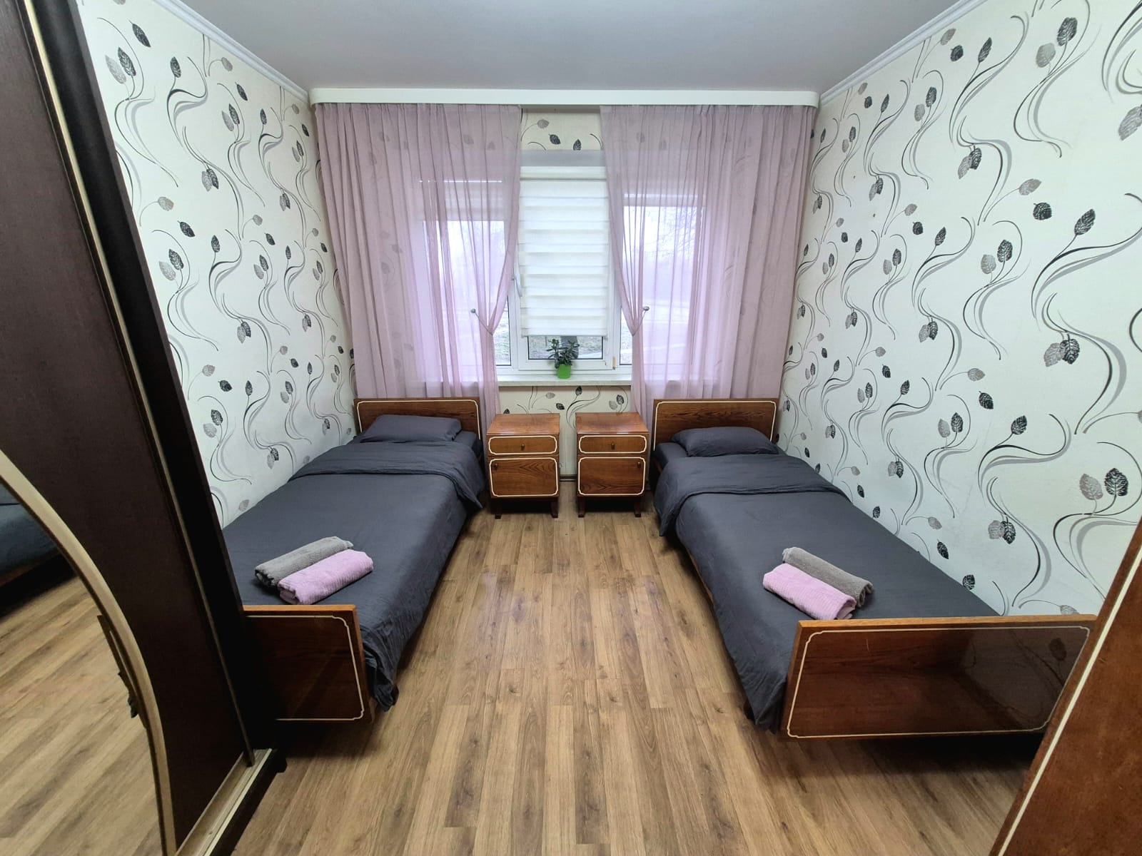 · Спальные места: В большой комнате — двуспальный диван. Во второй — два односпальных места (две односпальные кровати).