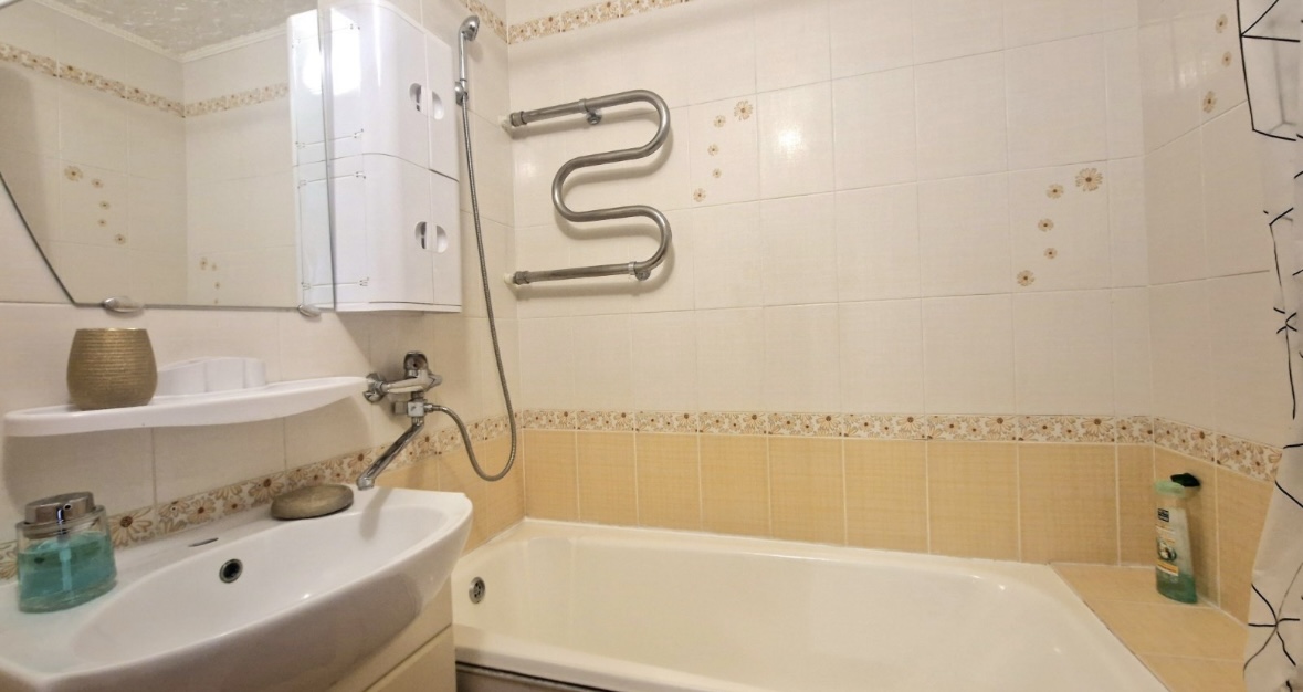 Телевизор, Домофон, Полотенца, Постельное бельё, Мыло, Туалетная бумага, Стиральная машина, Кофе, чай, Утюг, Фен, Шампунь, Застеклённый балкон/лоджия, Ванна, Холодильник, Микроволновая печь, Посуда