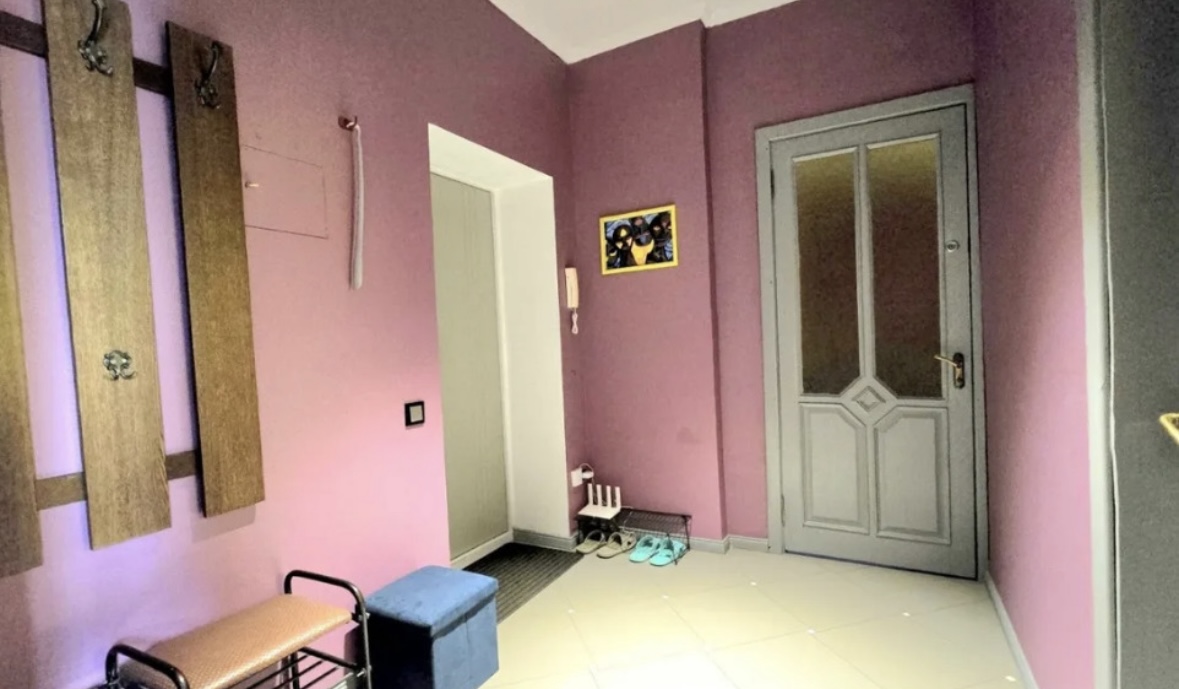 Телевизор, Домофон, Полотенца, Постельное бельё, Мыло, Туалетная бумага, Стиральная машина, Кофе, чай, Утюг, Фен, Шампунь, Застеклённый балкон/лоджия, Ванна, Холодильник, Микроволновая печь, Посуда