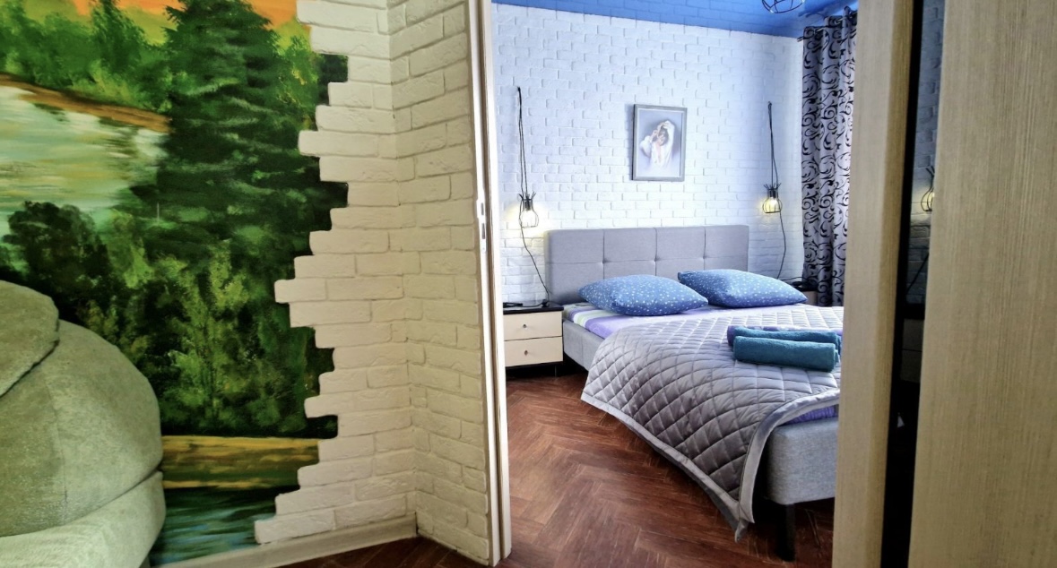 Расположена на первом этаже, чТо немаловажно для туристов с детьми и людей преклонного возраста. Не смотря на центр города, место достаточно тихое, под окнами пешеходная зона, которая через 100 м приводит к пешеходному мосту. Открывается изумительный вид на реку и достопримечательности с высоты птичьего полета. Для любителей активного отдыха в радиусе 300 м клубы, рестораны, бильярд, боулинг и много другое. Так же, не пользуясь транспортом, у вас будет возможность прогуляться по улице Советская, посетить ряд магазинов, сквер им Громыко, драматический, детский, молодежный театры, множество музеев, развлекательные аттракционы. В эпицентре всех этих событий располагается дом, в который вы уже хотите попасть. Да и само строение считается историческим памятником. А интерьер квартиры с художественной росписью, тематическими картинами подчеркивает ваше местоположение и позволяет всецело погрузиться в атмосферу города.