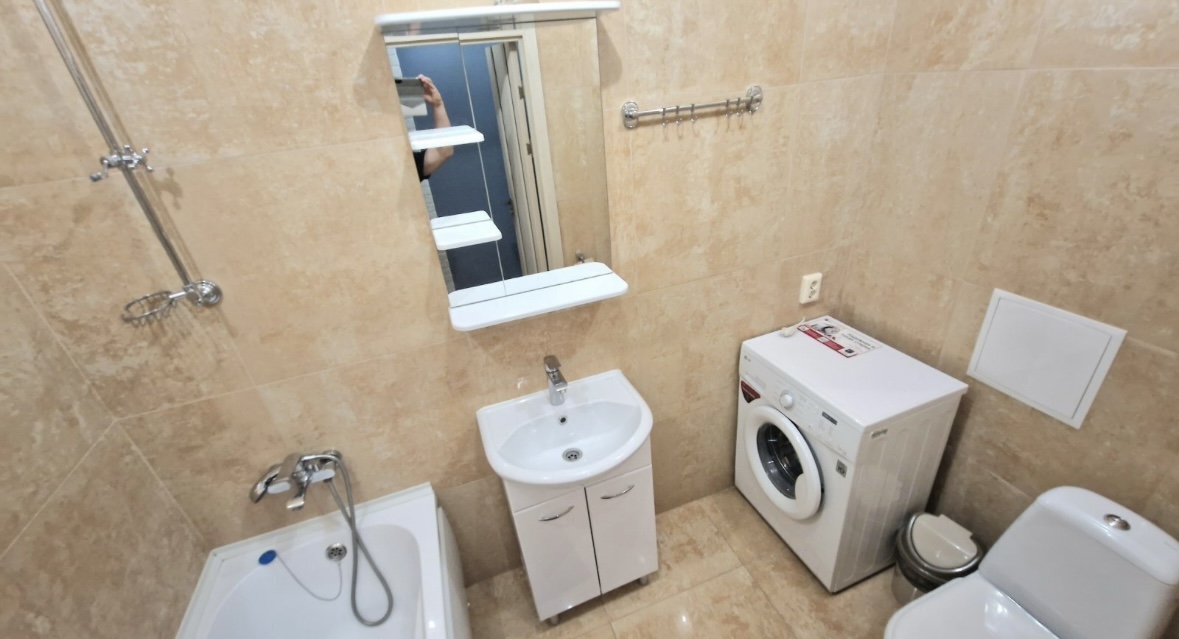 Телевизор, Домофон, Полотенца, Постельное бельё, Мыло, Туалетная бумага, Стиральная машина, Кофе, чай, Утюг, Фен, Шампунь, Застеклённый балкон/лоджия, Ванна, Холодильник, Микроволновая печь, Посуда