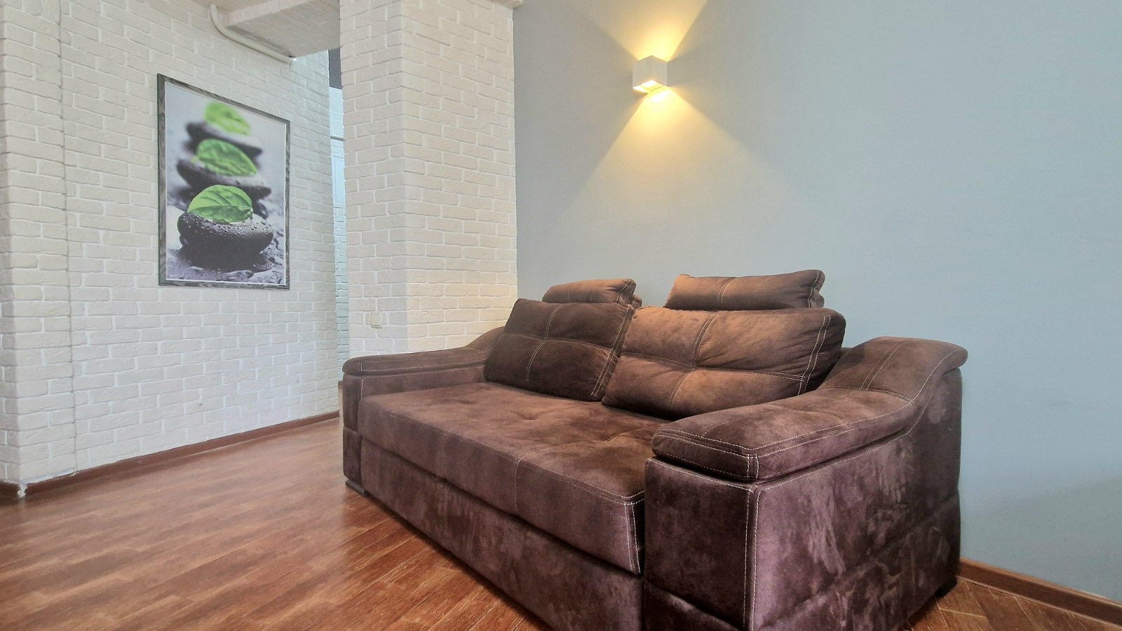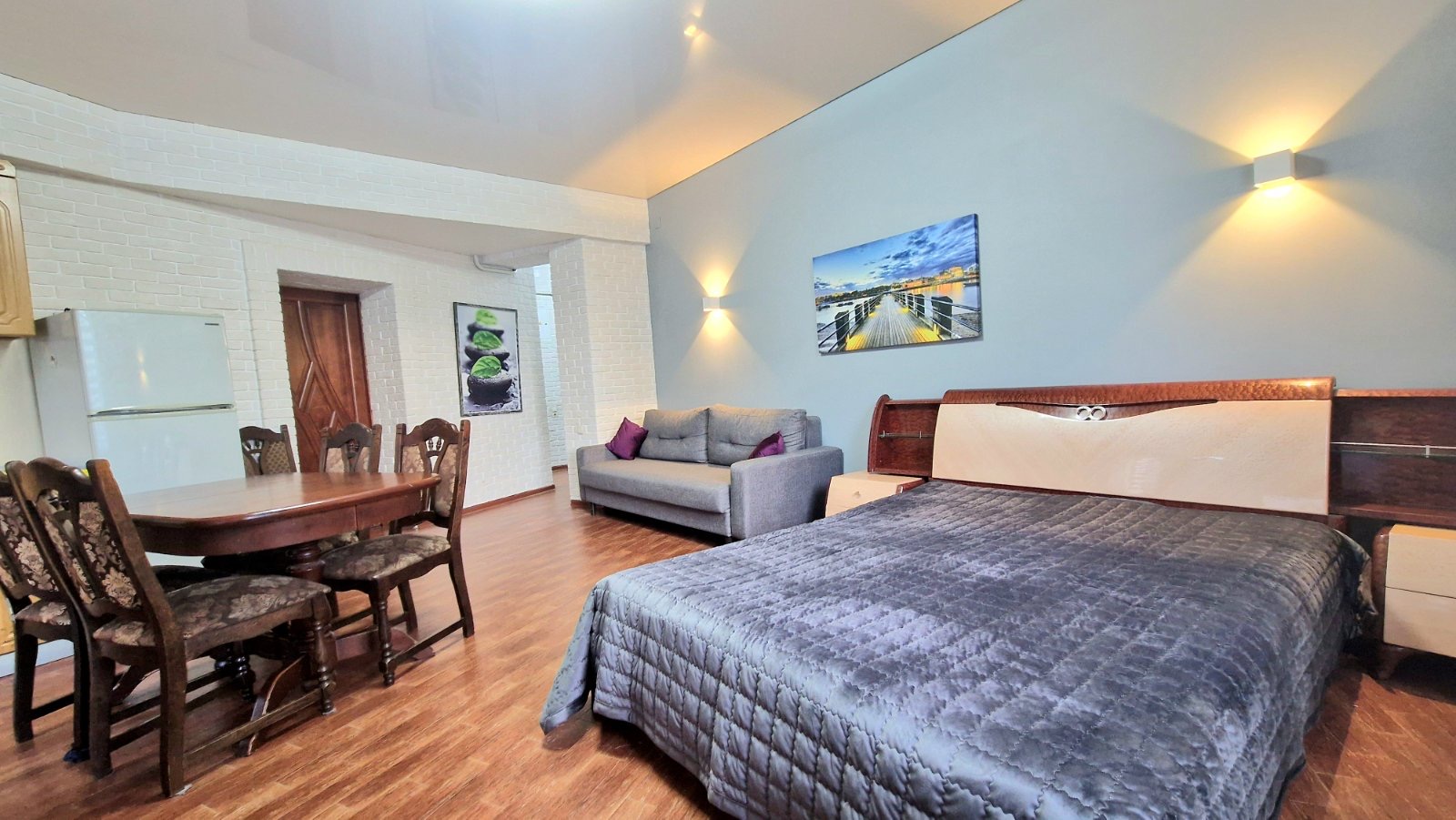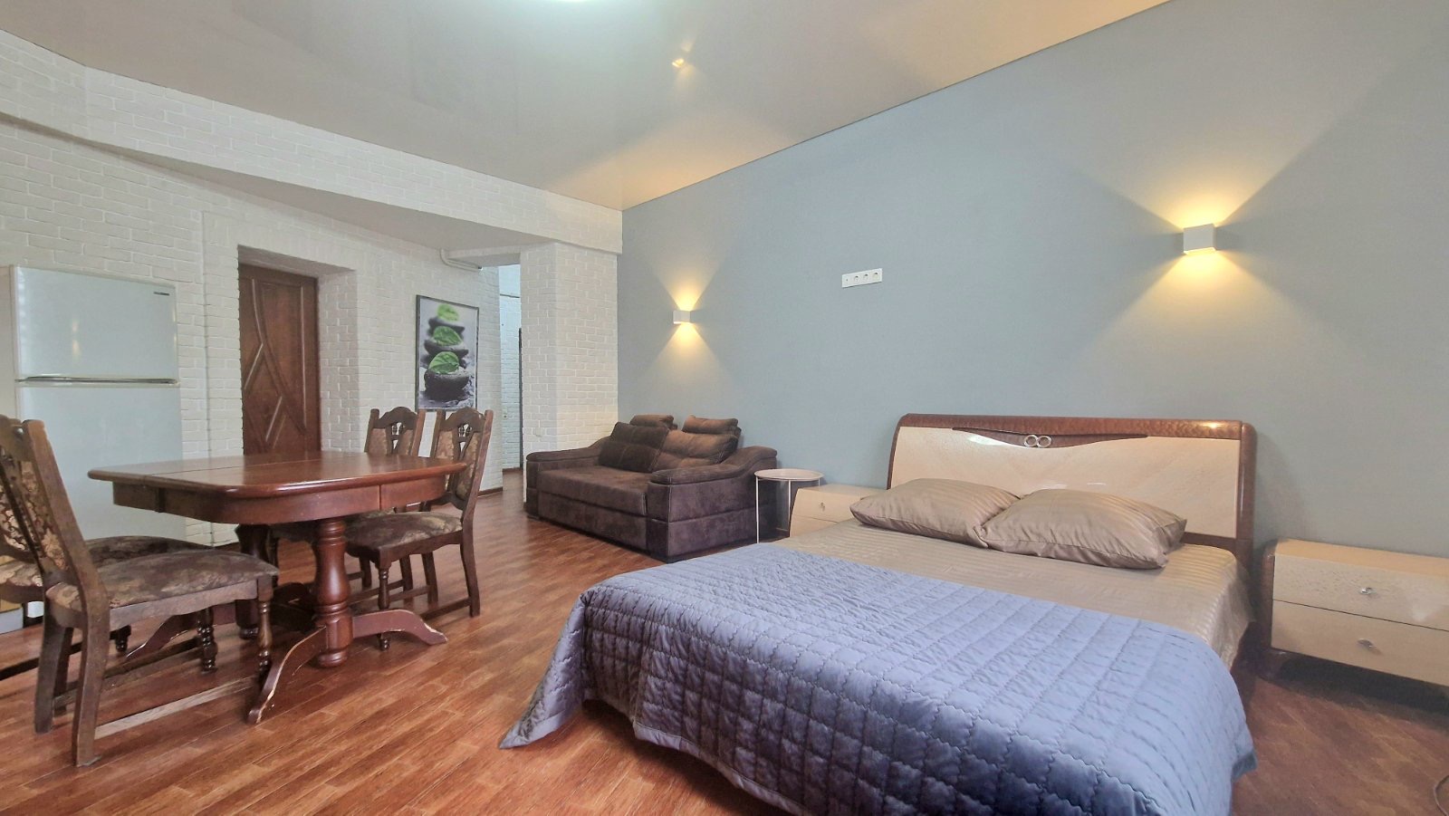 Просторная студия с тремя комнатами в самом центре города. Дом представляет собой архитектурную ценность. Вид из окон благодаря удачному расположению открывается на три стороны проспекта.