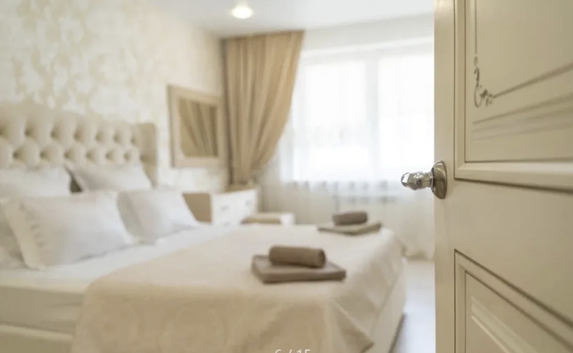 Главная особенность апартаментов - это изумительный вид из окна. К высоте шестнадцатого этажа добавляется естественное возвышение, на котором находится дом. Такое местоположение создает великолепие природы при взгляде с одной стороны и обзорную панораму ночного города с другой. Останавливаясь у нас Вы находитесь на огороженной территории, где всегда имеются парковочные места, детская площадка, ухоженная зеленая зона. Если говорить «театр начинается с вешалки», то это именно тот случай. Широкий, удобный подъезд с дизайнерским ремонтом, оригинальной подсветкой, несколько лифтов, система видеонаблюдения, чистые и ухоженные коридоры позволят ощутить заботу уже на первоначальном этапе. В самой квартире выполнен дизайнерский ремонт в современном стиле. Дорогая обстановка сочетается с мебелью и техникой известных производителей, что позволяет наслаждаться предметами, проверенными временем. Это вы можете увидеть на фото, а лучше остановиться у нас и убедиться лично