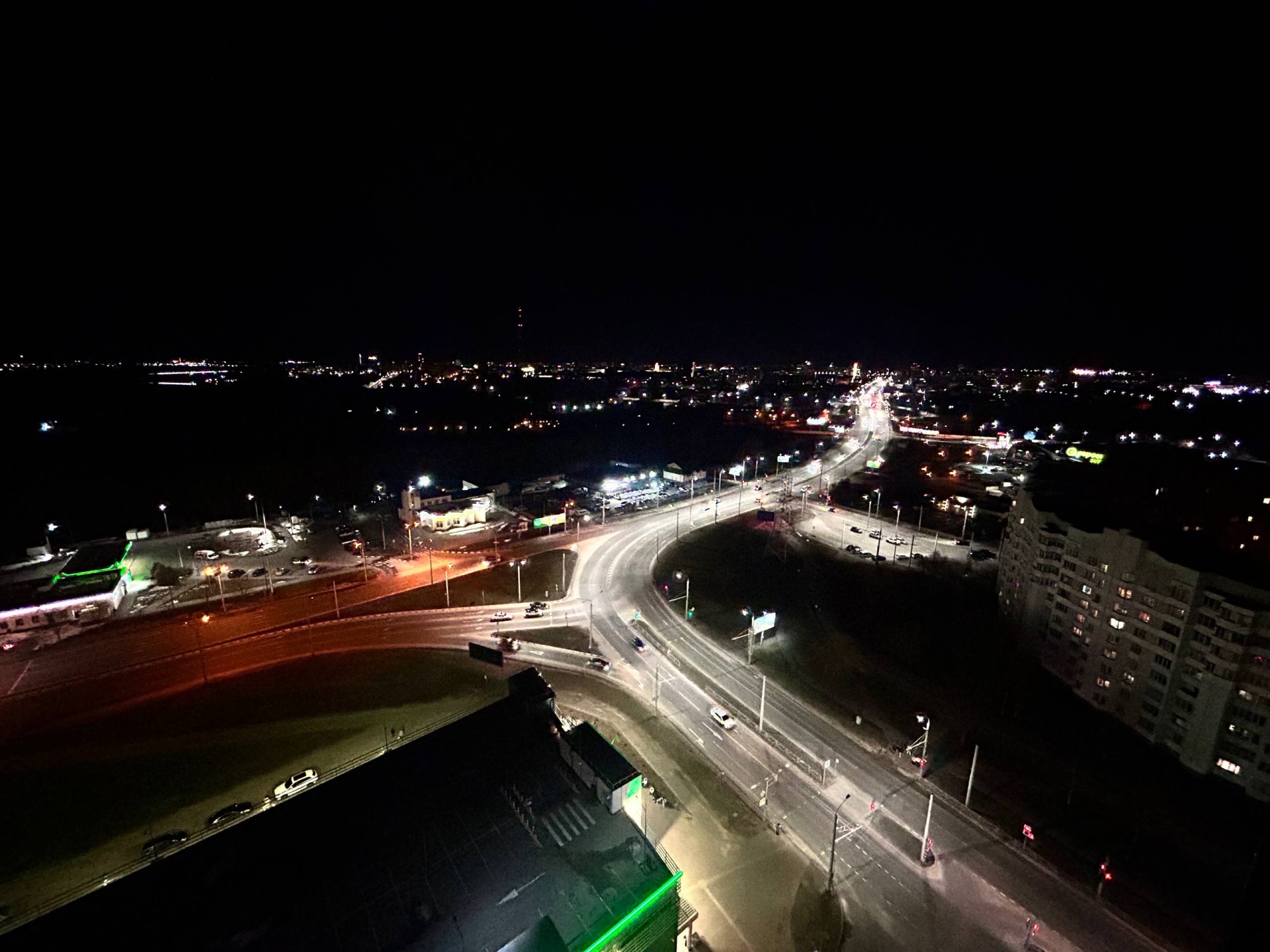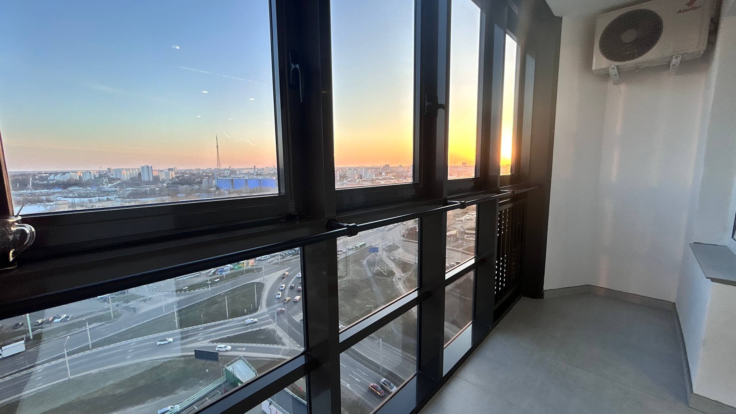 * Вид с 21 этажа: Панорамное остекление по всему периметру. Наслаждайтесь огнями ночного Гомеля и невероятными закатами.